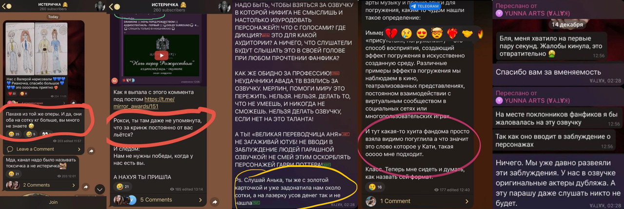 Катя рассказывает, кто достаточно талантлив, чтобы заниматься озвучкой вместе со светилами фандома, а если вдруг перст не был целован и разрешение не получено, то отпустить комментарии о весе людей и о том, что и где у них нужно продепилировать.