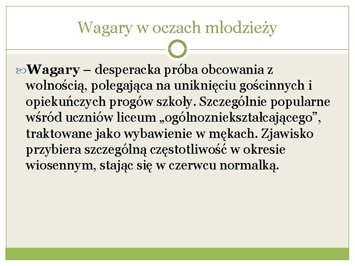 Na wagarach może się nic nie stać, albo może się stać najgorsze . Najważniejsze jest to, że w szkole dziecko jest pod opieką nauczycieli, czyli powinno być bezpieczne . Na wagarach dziecko nie jest bezpieczene, ponieważ nie jest pilnowane i nie wiadomo gdzie jest . Co zrobić, aby zniechęcić nastolatka do wagarów? Pokaż dziecku ten . . .
