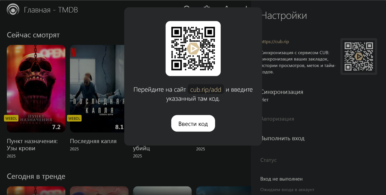 Для сохранения своих настроек и синхронизации между устройствами нужно создать аккаунт на сайте https://cub.rip . Далее идем по пути Лампа - Настройки - Синхронизация - Выполнить вход и следуем информации написанной на экране.