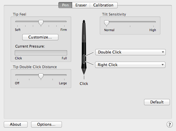 Настроить чувствительность пера
