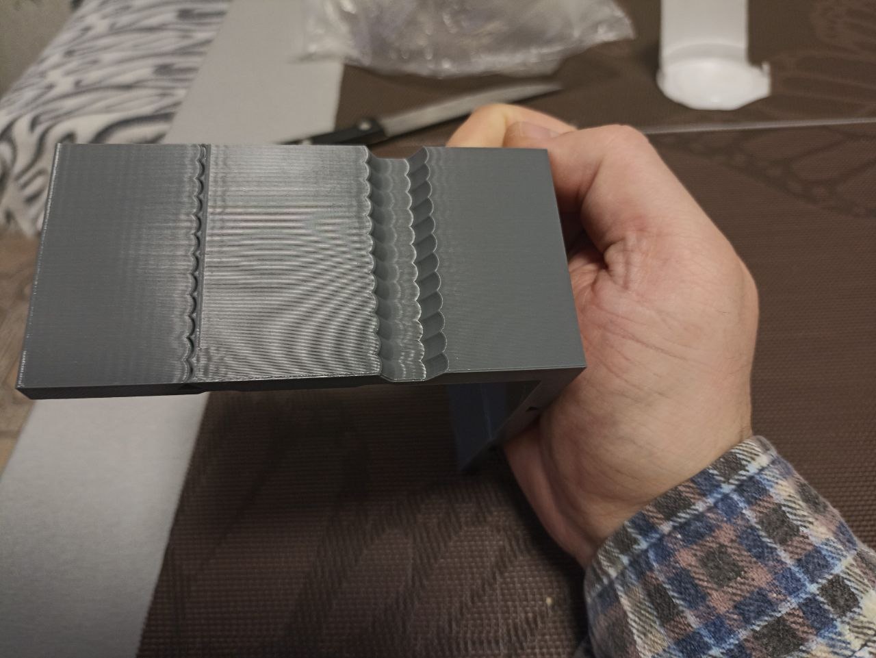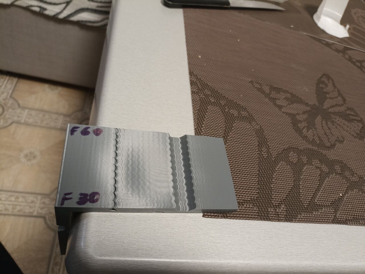 Далее нарезаем модель и печатаем. Выбираем самый красивый слой и считаем коэффициент затухания как и при выборе частоты. Вносим значения в прошивку.