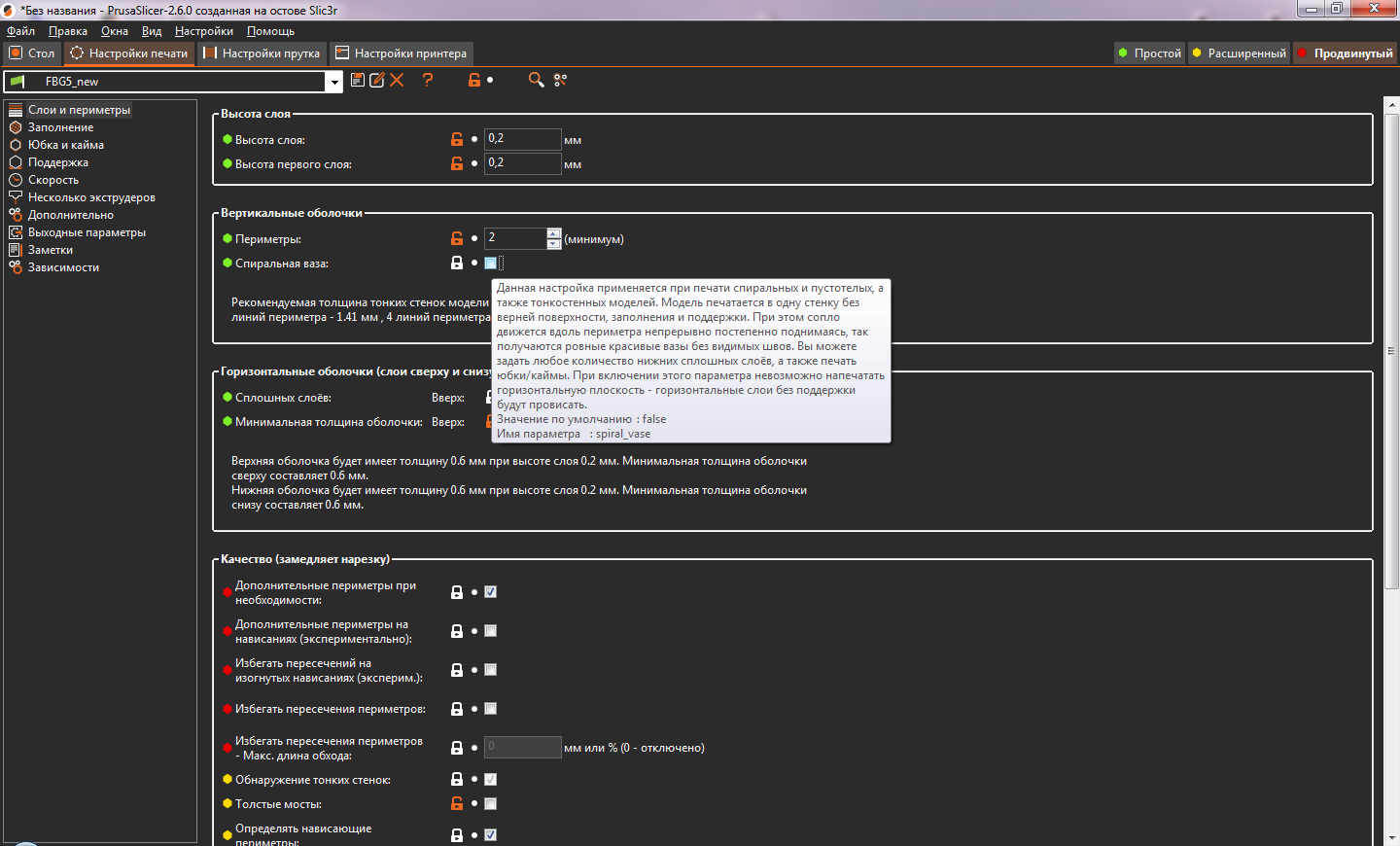 2. Запустить слайсер и добавить скаченную модель, включить для неё режим вазы ( я использую Prusa Slicer, для других видов слайсеров настройки можно взять из статьи Marlin)