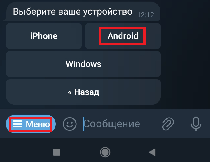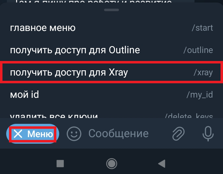 Заходим к боту, нажимаем Меню, Получить доступ для XRay.