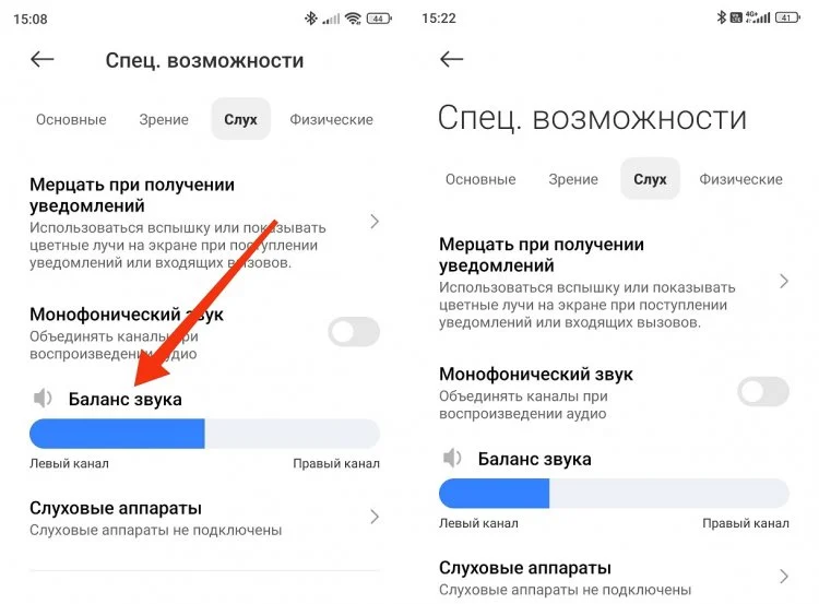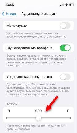 Настройка баланса наушников
