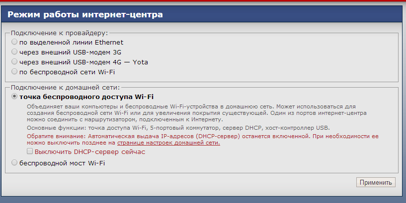 Настройка интернет центра