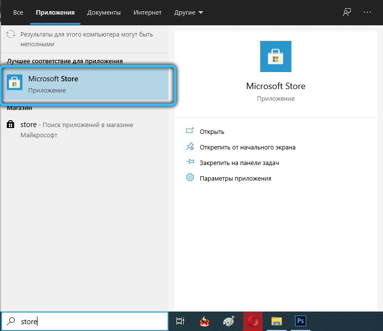 Настройка microsoft store