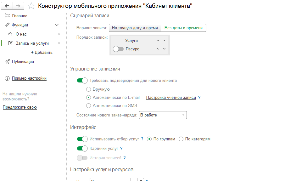 Настройка мобильного клиента 1с