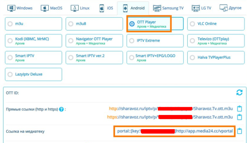 Где OTT ID заменить на ваш OTT ID, который можно посмотреть в личном кабинете - настройки просмотра - шаг 4 (необходимо развернуть) над ссылками на плейлист.