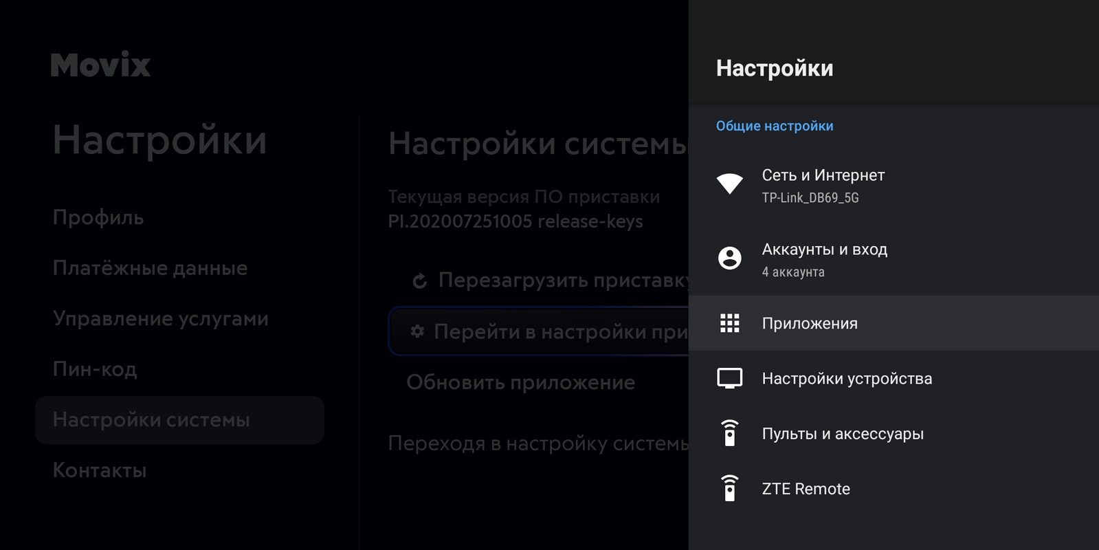 Настройка сети приставки