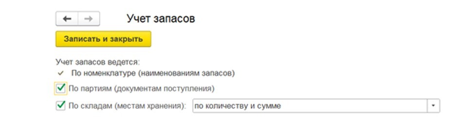 Настройка учета по складам