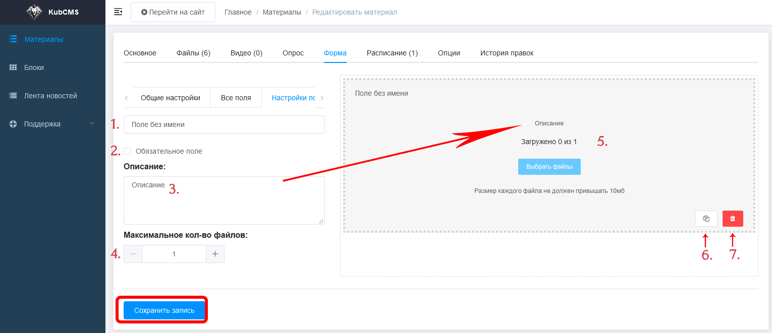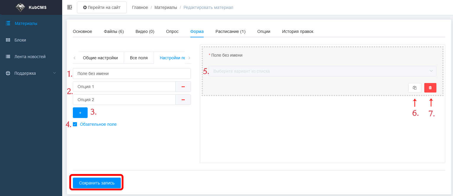 Настройки форма связи