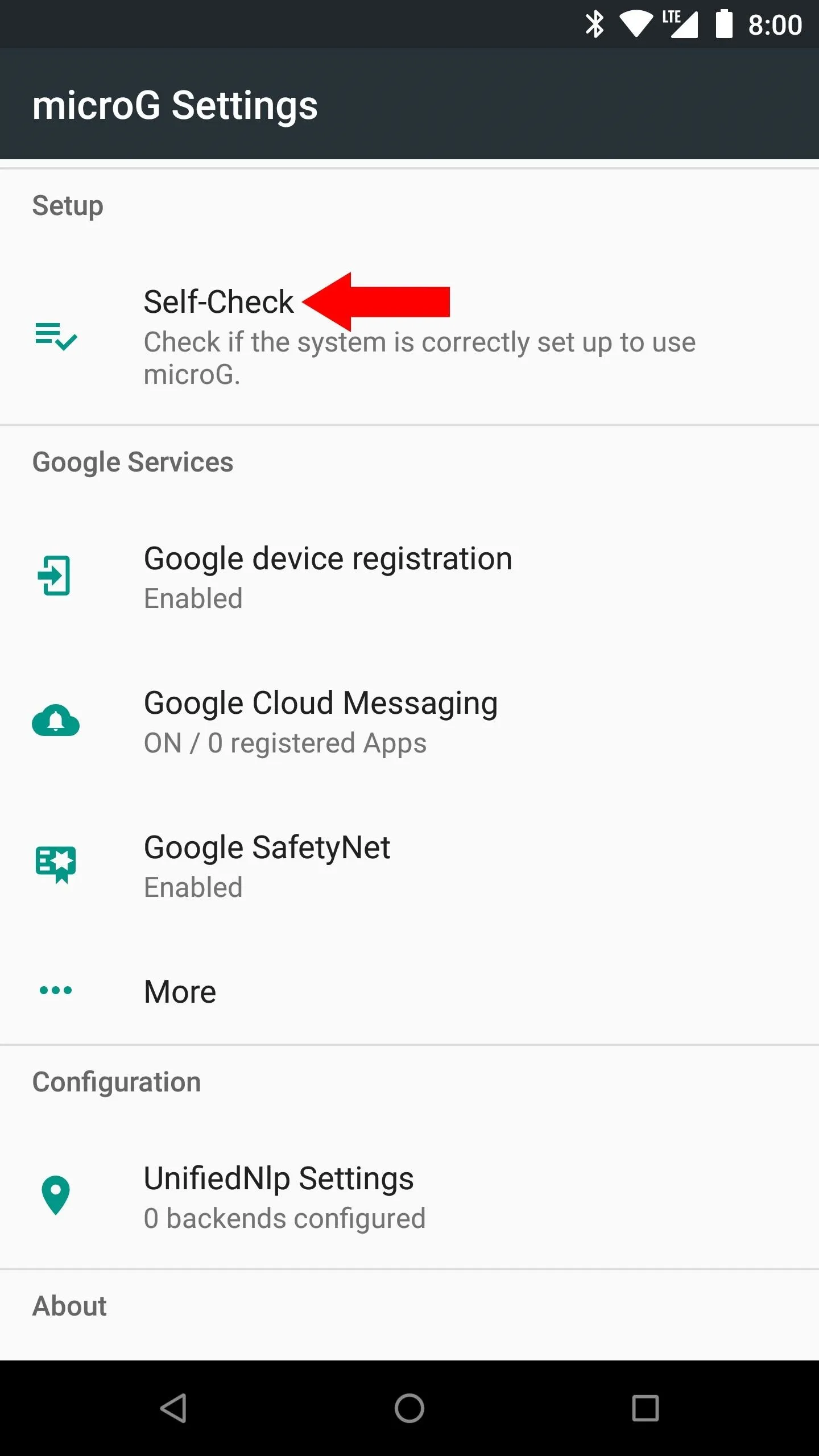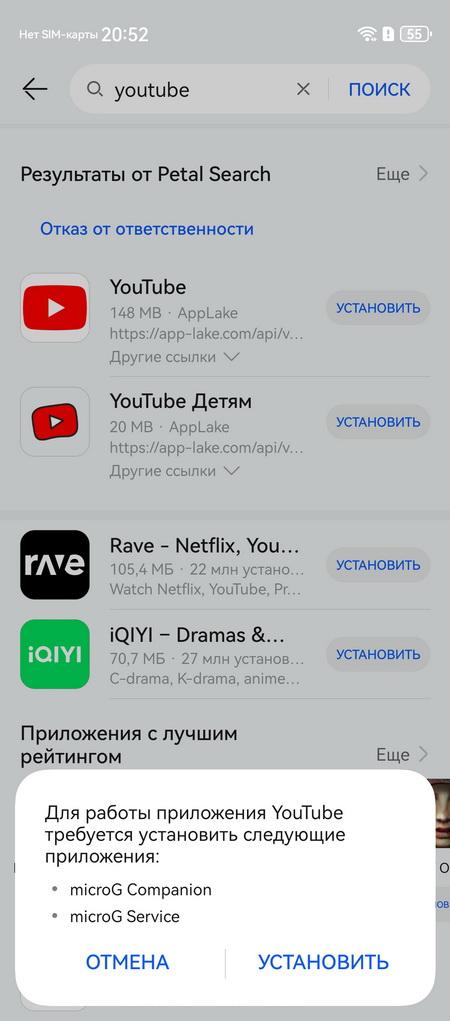 Настройки microg