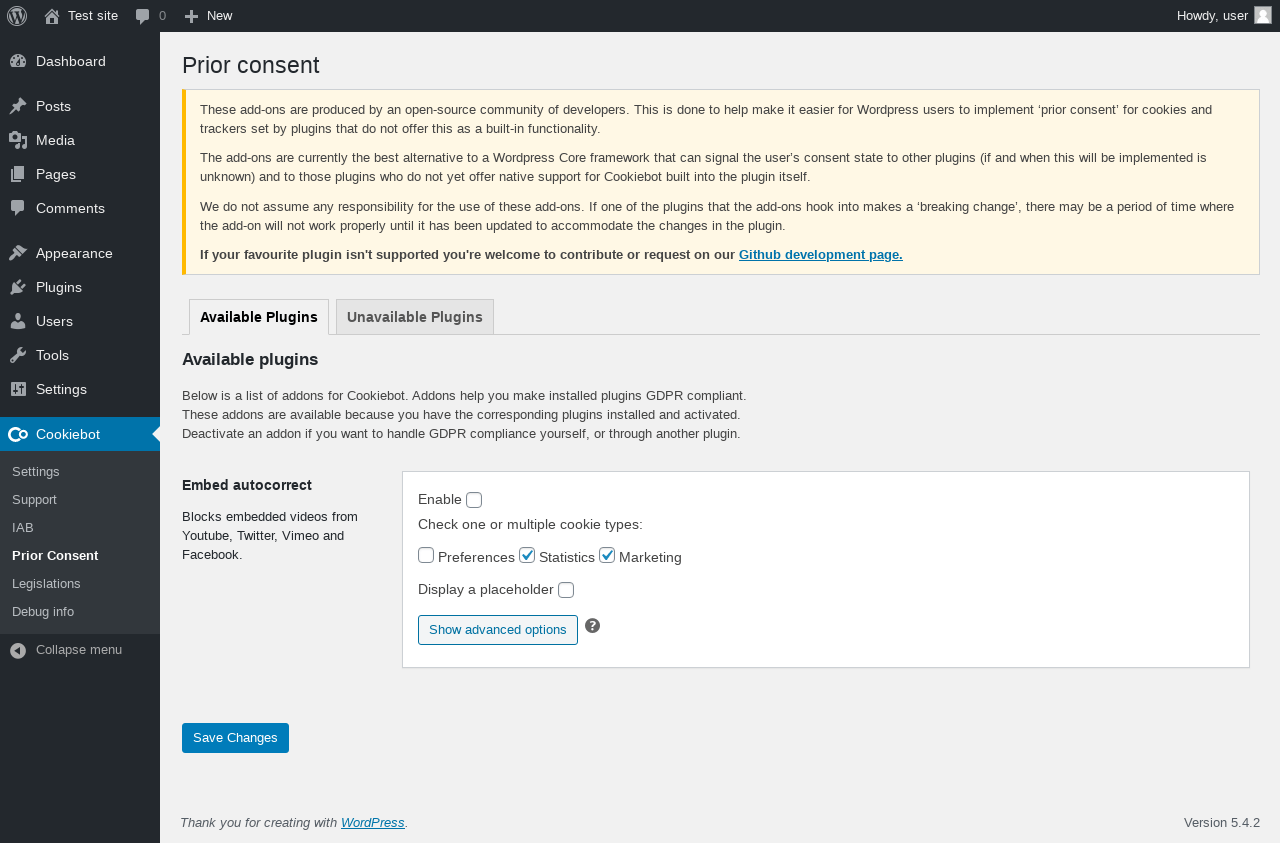 Настройки сайтов в расширении