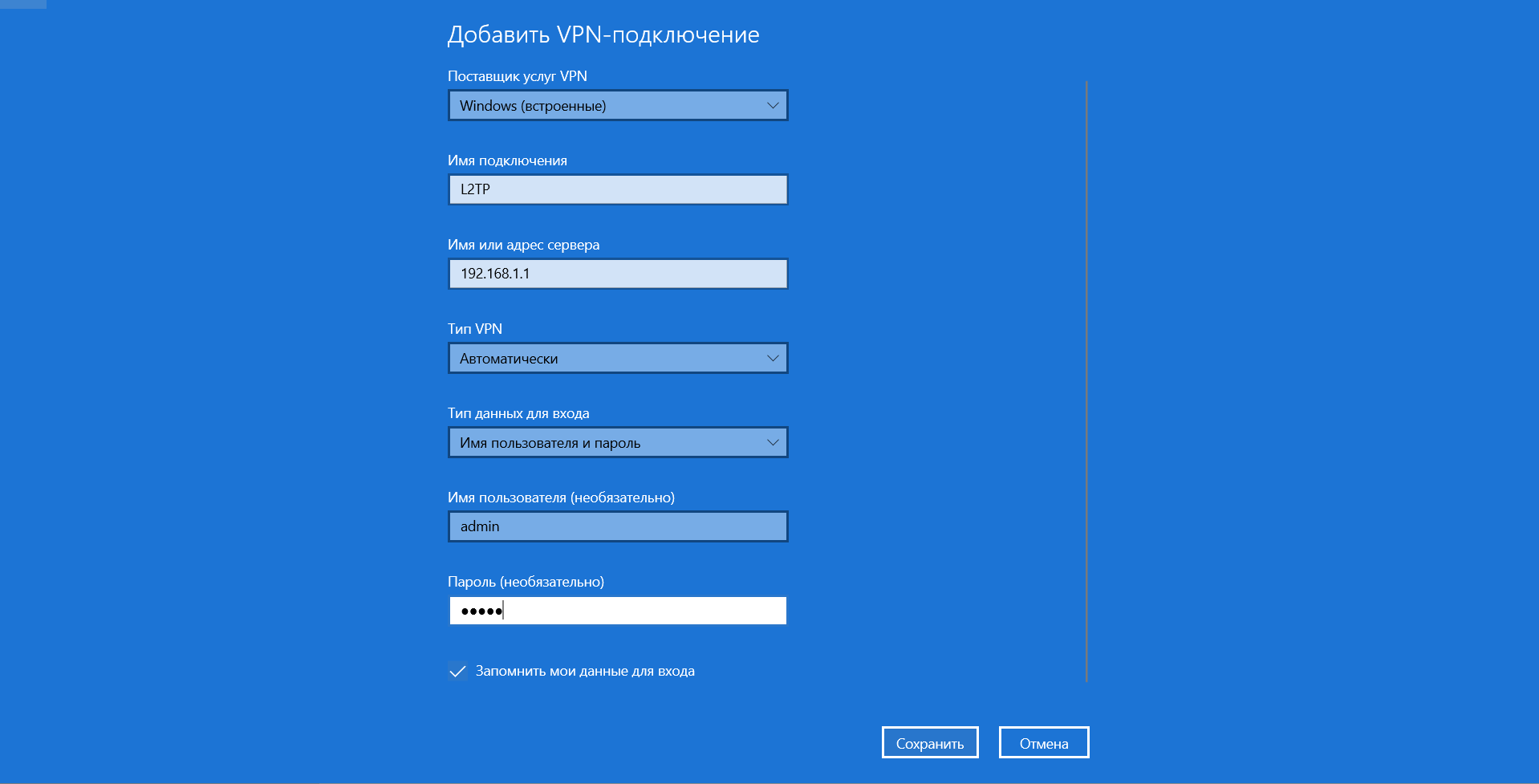 Настройки сервера и клиента windows