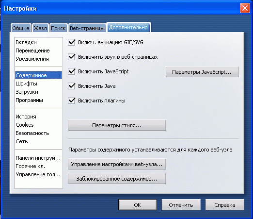 Настройки вкладка дополнительно