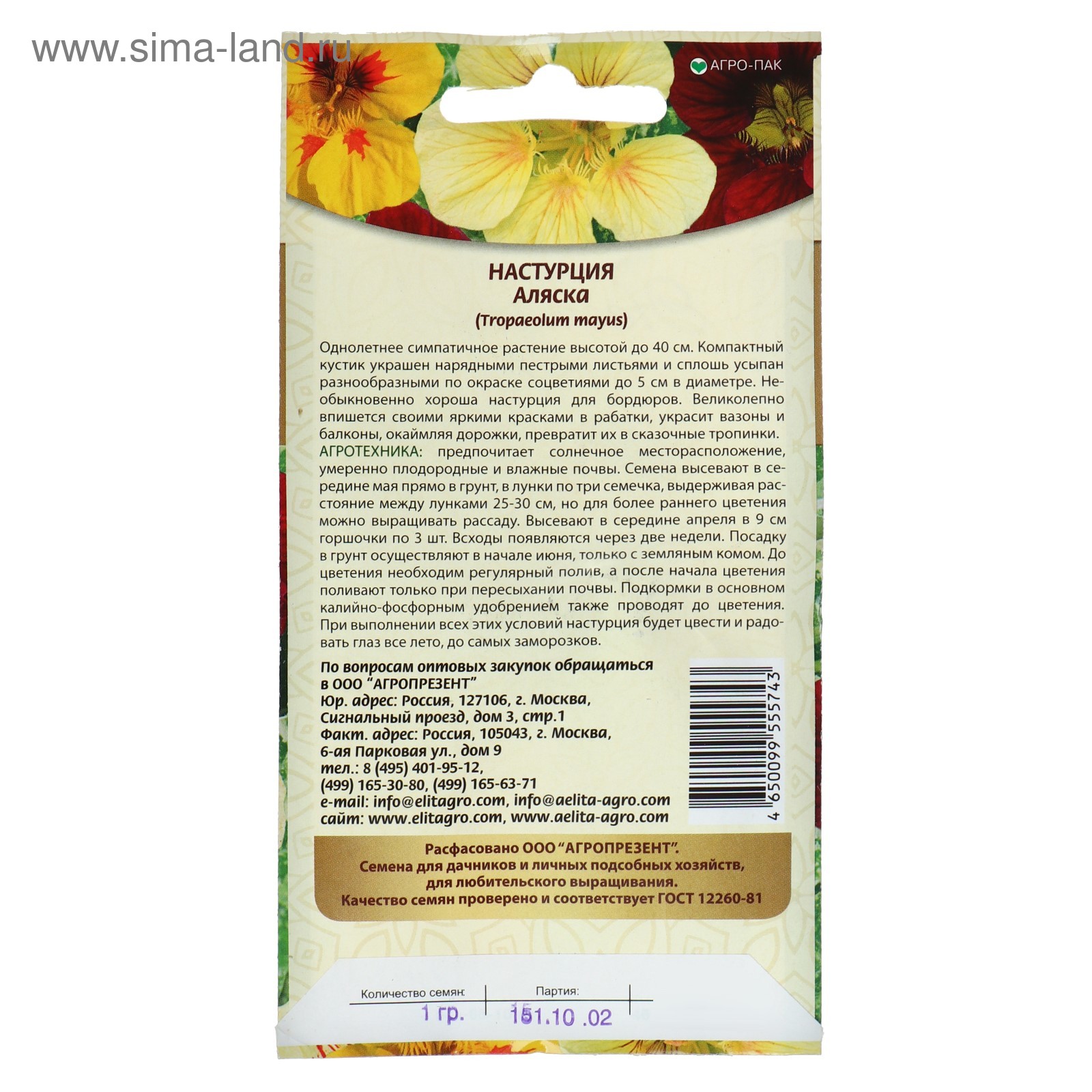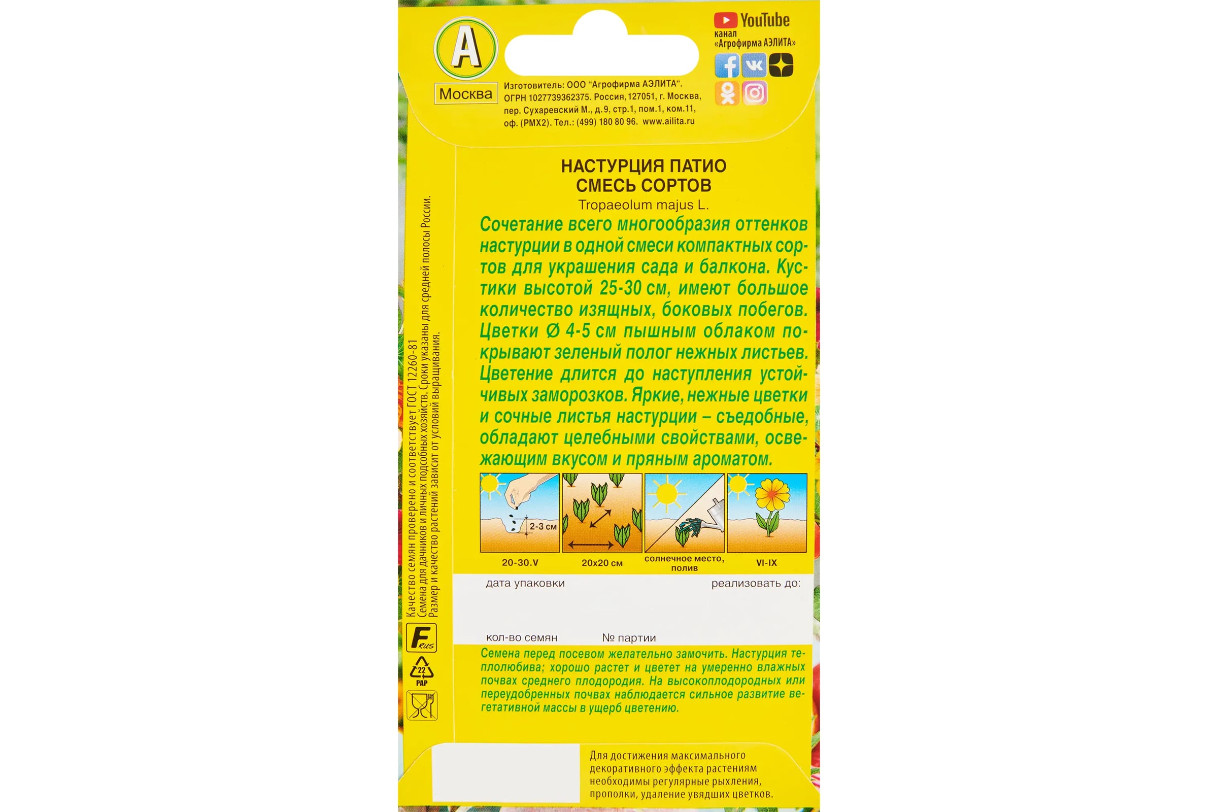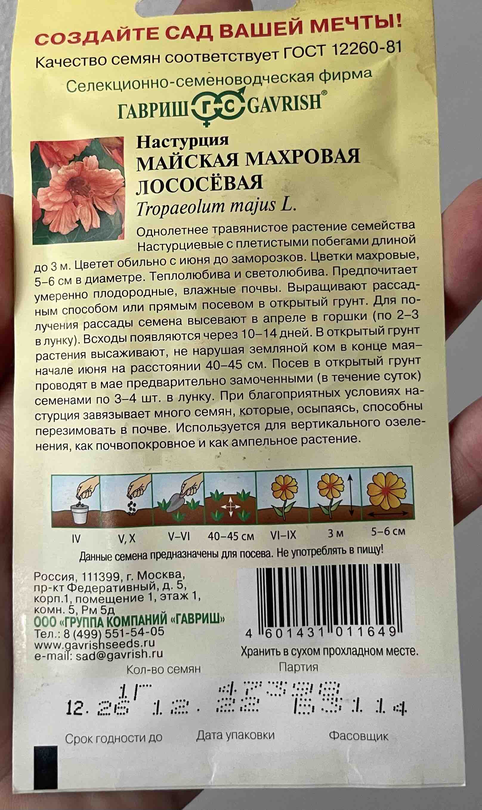 Настурция сроки посева