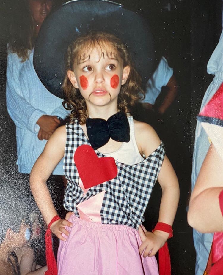 Нередко Натали Портман показывает свои детские фотографии . Тем самым, актриса доказывает,что вся её красота естественна . Девочка позирует в клетчатой майке с сердцем и розовой юбке . На её голове черная шляпа, а лицо разрисовано . Фото: Инстаграм .