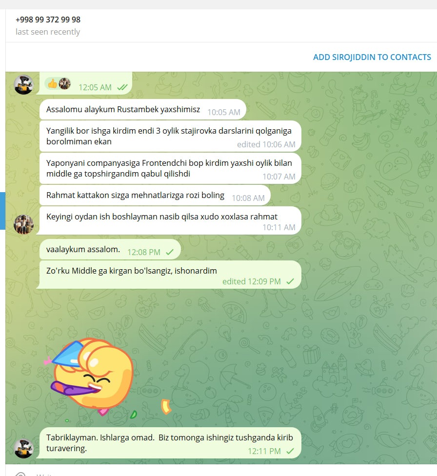 Telegram: Jasurbek(telegrami topilmadi)