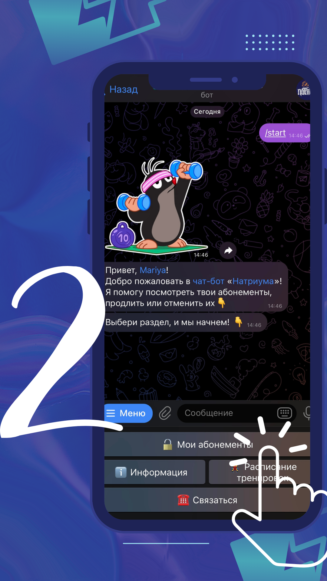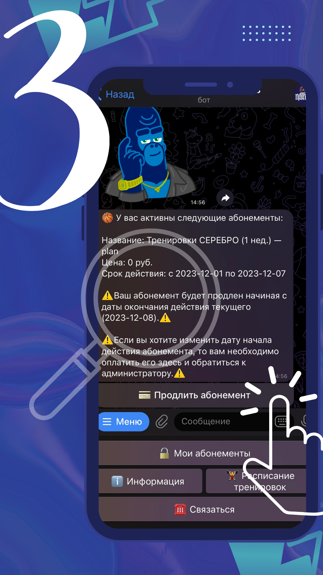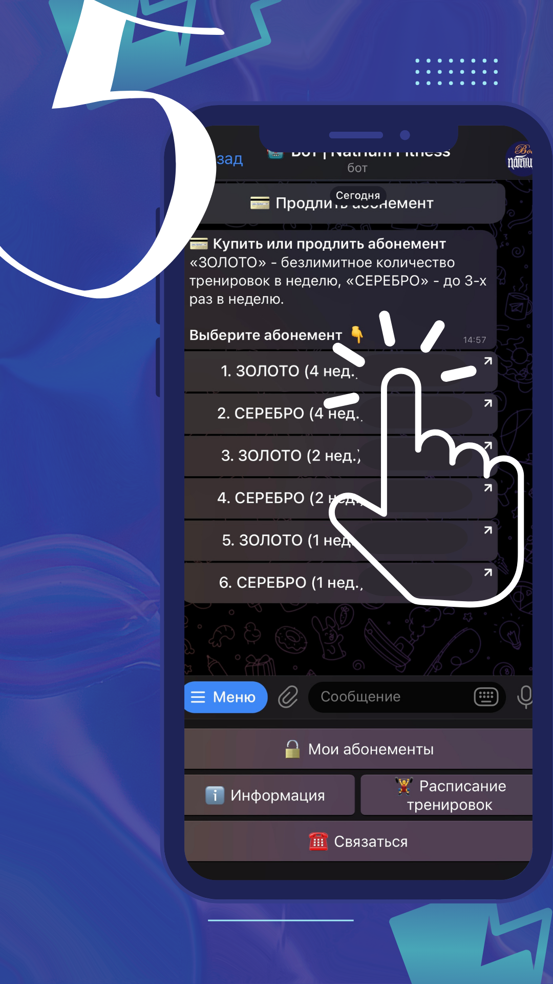 1️⃣ Если ты наш действующий клиент, ты можешь быстро и удобно приобрести абонемент в группы. Для этого тебе нужно:
