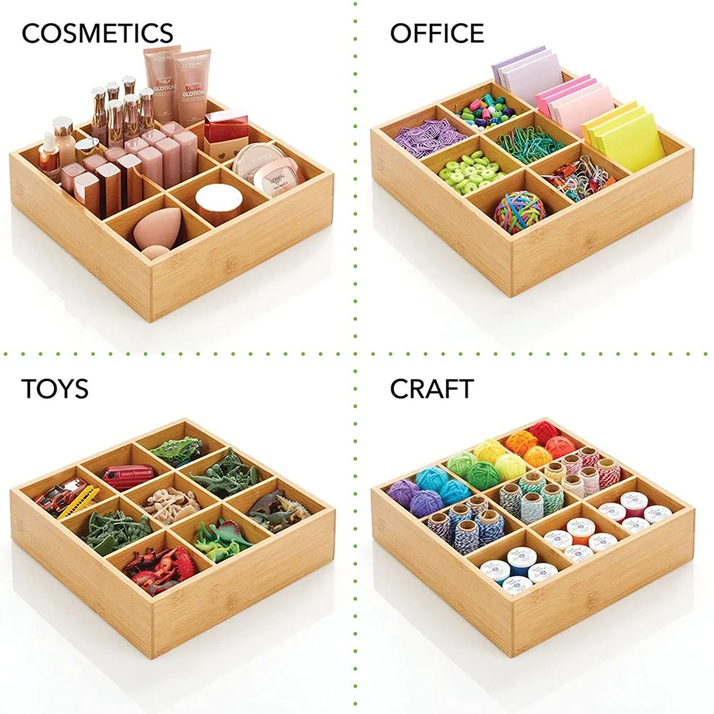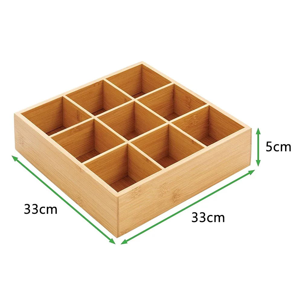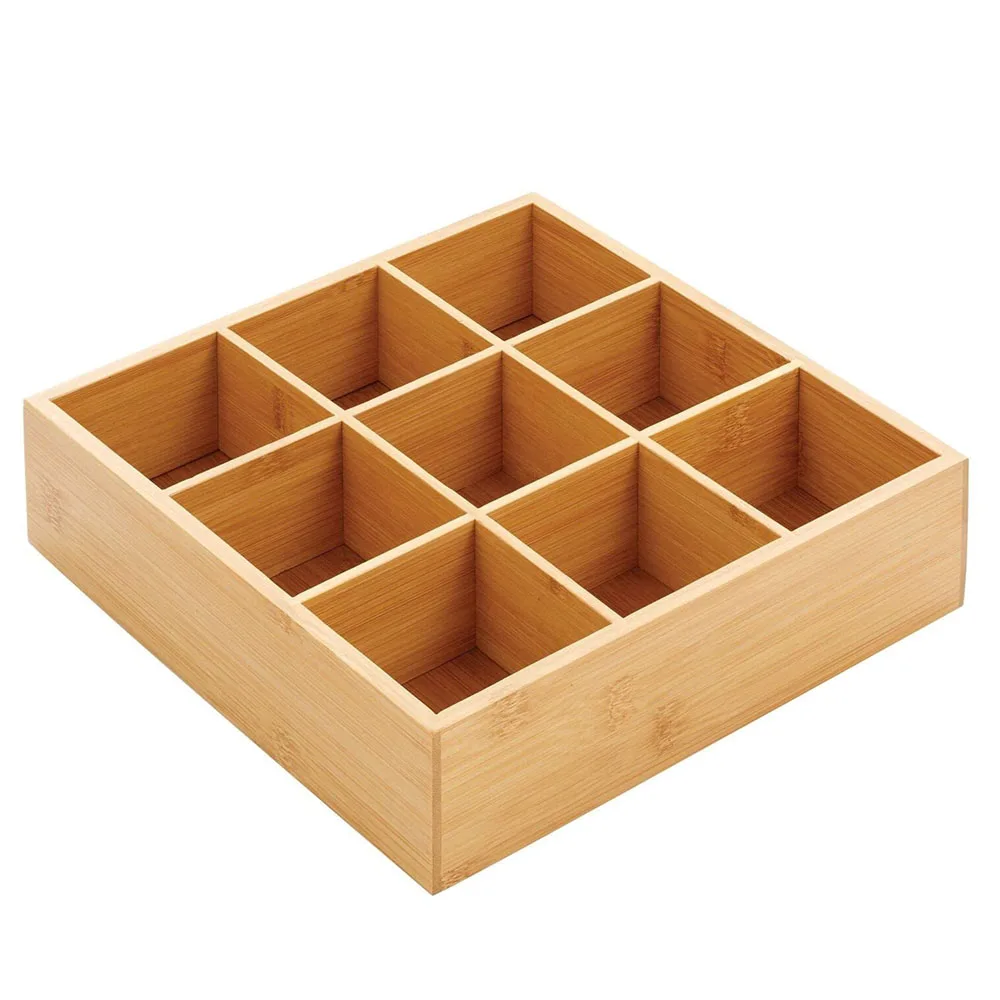 Natural Bamboo Kitchen Pantry Storage Organizer Box - 9 Divided Sections, Open Top, Decorative Holder for Tea Bags,Small Items - Купить с бесплатной доставкой