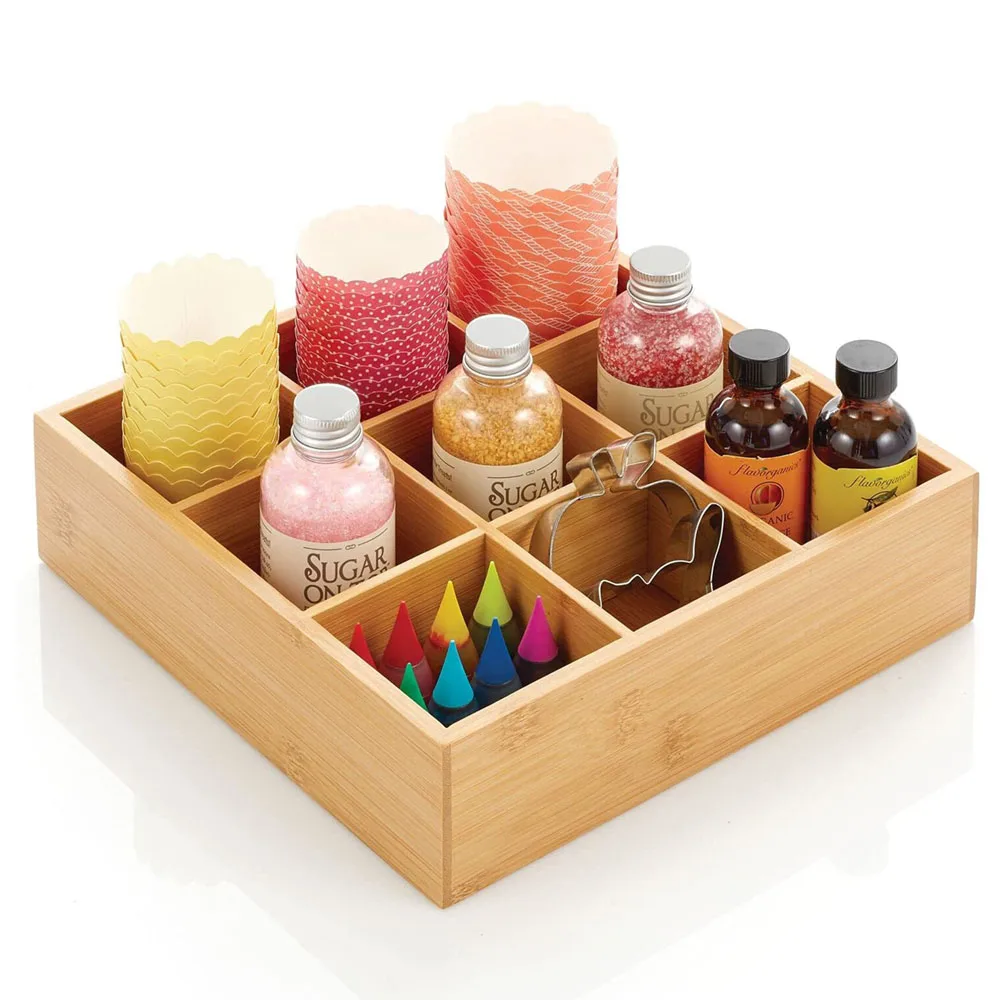 MkbacotsQЗдесь вы сможете купить Natural Bamboo Kitchen Pantry Storage Organizer Box - 9 Divided Sections, Open Top, Decorative Holder for Tea Bags,Small Items с бесплатной доставкой до вашего почтового отделения.