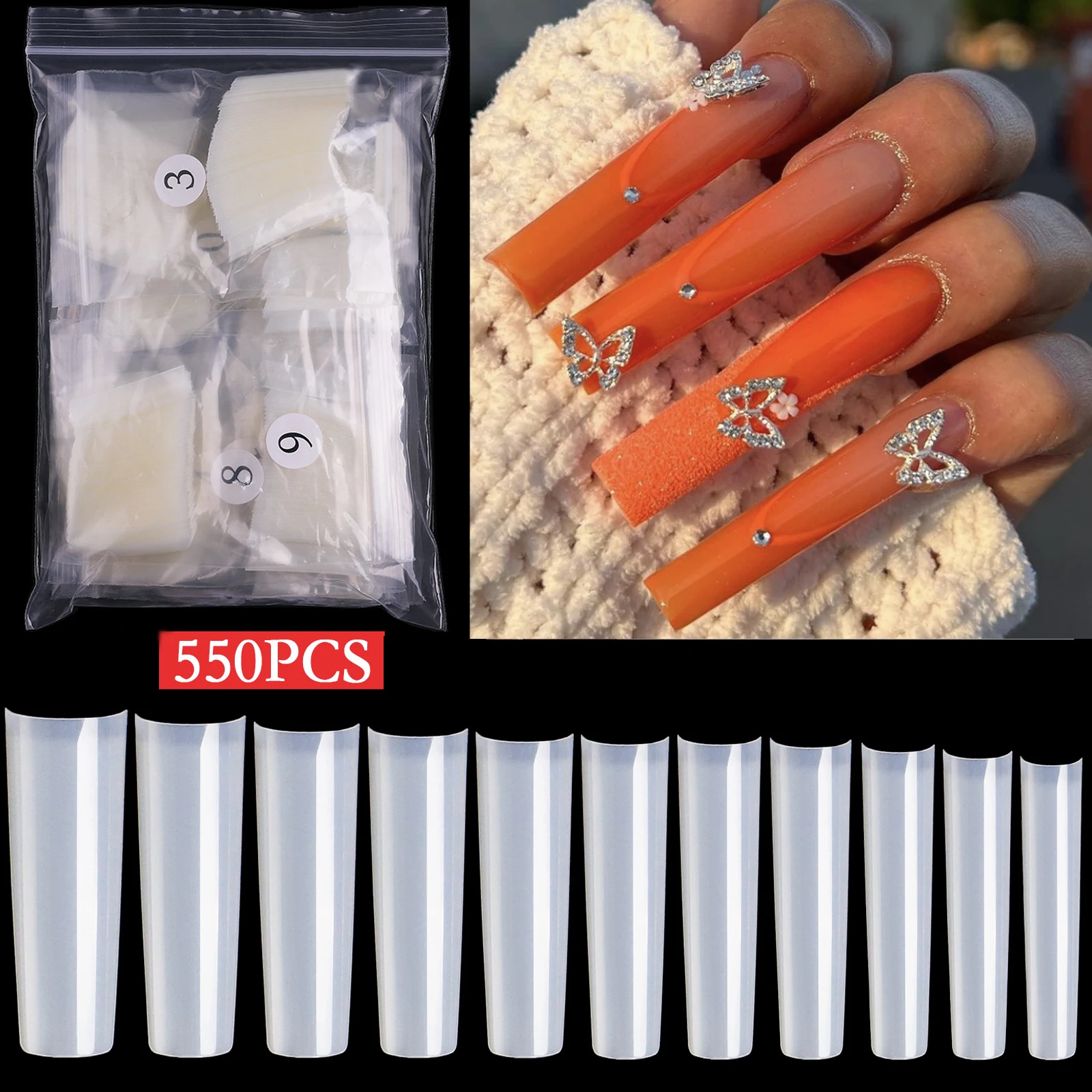 "Natural Long Ballet False Nails ABS Full Cover Nail Tips Natural White Transparent French Fake Nails Decorations Tool 500pcs/box" * Buy Now Just For 7$