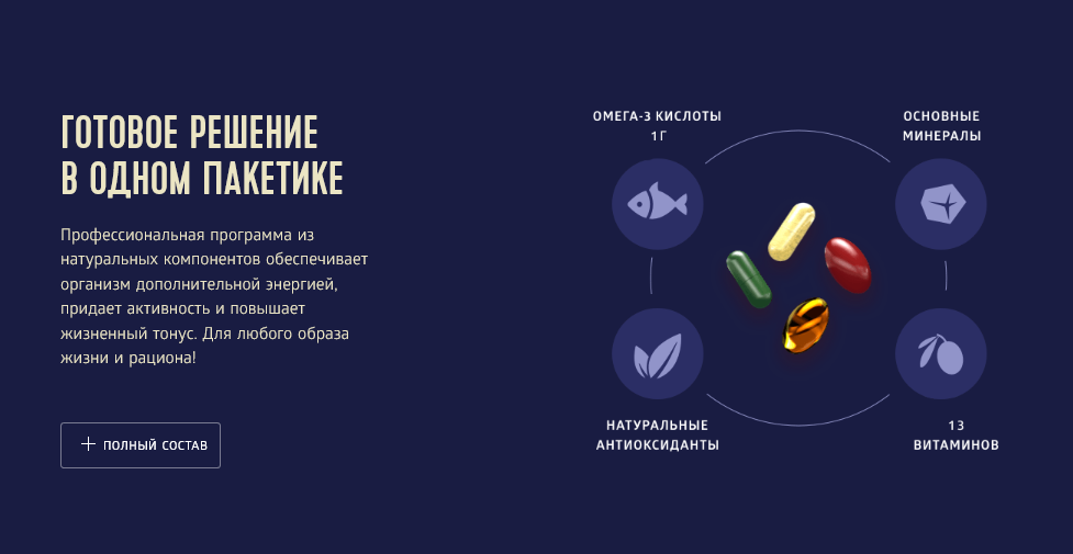 Natural Vitamins - Siberian Super Natural NutritionПрофессиональная поддержка организма природными компонентами: витамины, минералы и омега-3 кислоты в натуральной легкоусвояемой форме. 30 пакетов по 4 капсулы. В наличии, 539 000 сумов.