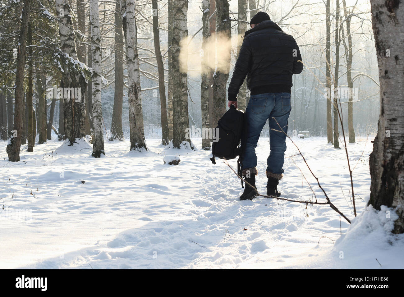 Натянули леску в лесу