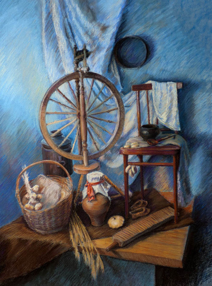 Натюрморт с прялкой старинные предметы какие изображены