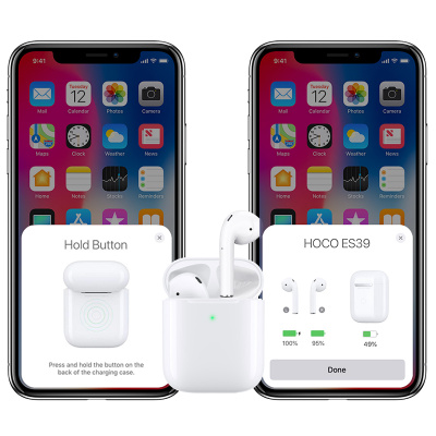 Hoco ES39 компактные и лаконичные Bluetooth-наушники . Они принадлежат к новому поколению True Wireless Stereo, в котором каждый вкладыш является полноценным наушником и может использоваться самостоятельно .