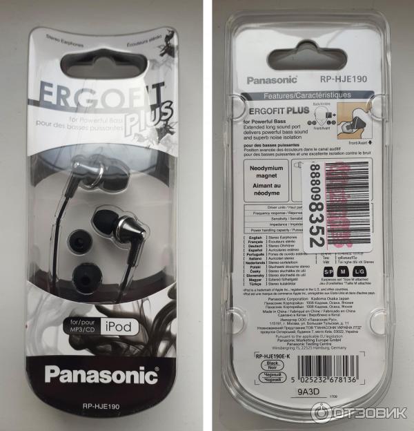 RP -HJE190 - Наушники-вкладыши Panasonic канального типа . -Система Ergofit Plus - улучшенное воспроизведение баса и повышенная звукоизоляция . -Частотный диапазон - 6 Гц - 24 кГц .