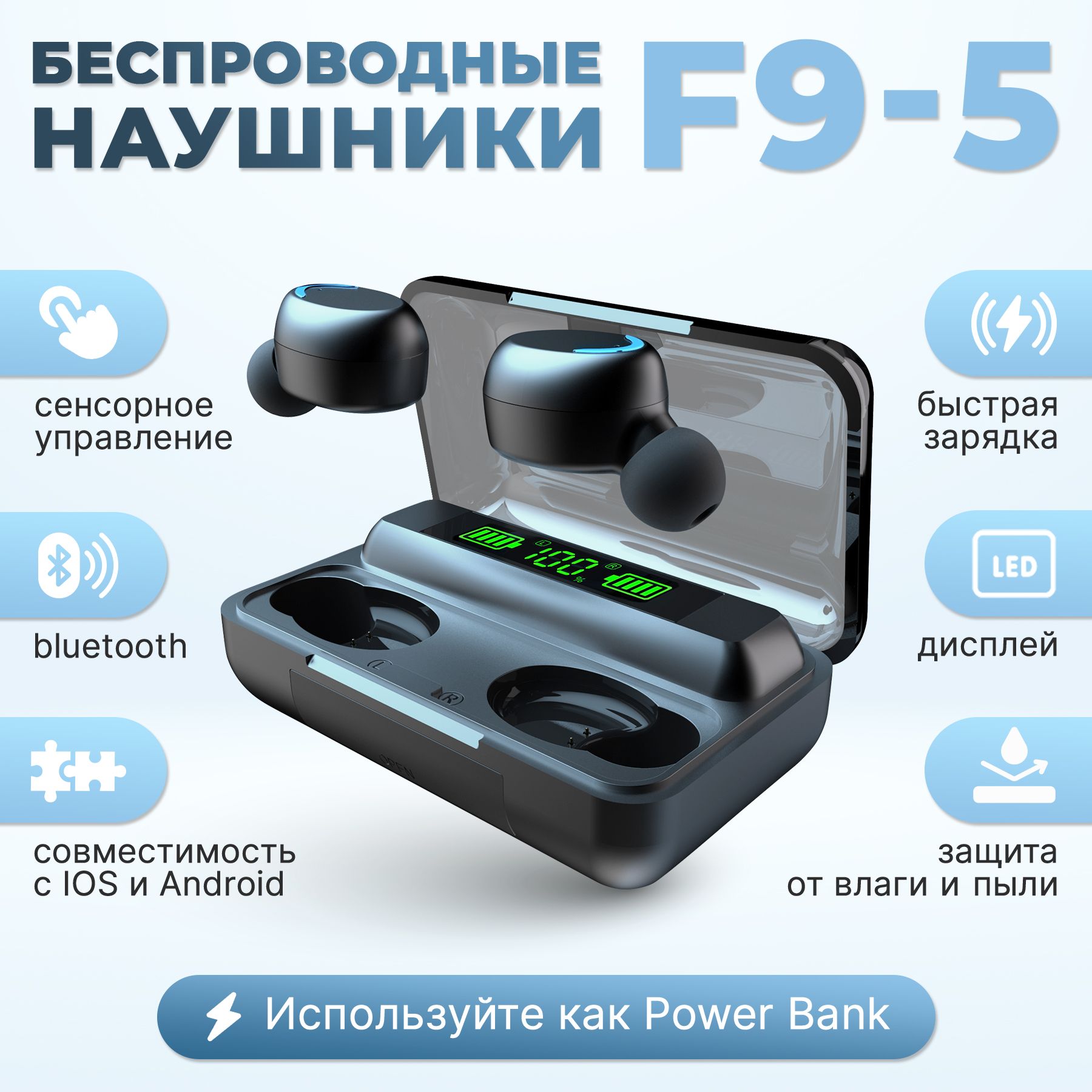 Наушники f9 bluetooth 5.1