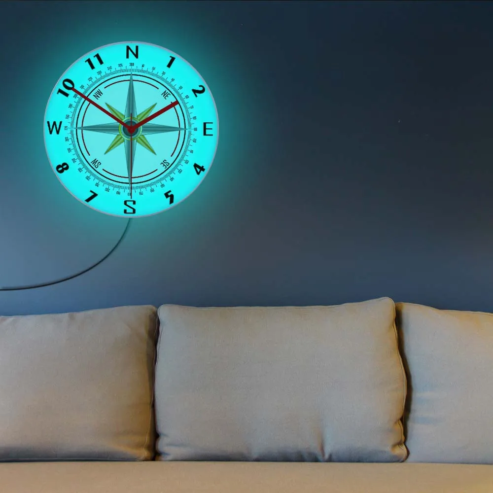 Nautical Compass Rose LED Lighting Wall Clock For Living Room Sailor Mariner Home Decor Compass Direction Luminous Wall Clock - Купить с бесплатной доставкой