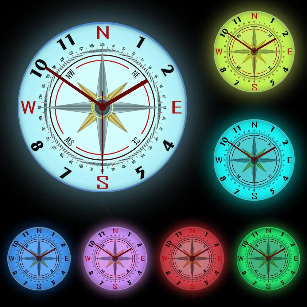 iHssaHuqUbЗдесь вы сможете купить Nautical Compass Rose LED Lighting Wall Clock For Living Room Sailor Mariner Home Decor Compass Direction Luminous Wall Clock с бесплатной доставкой до вашего почтового отделения.