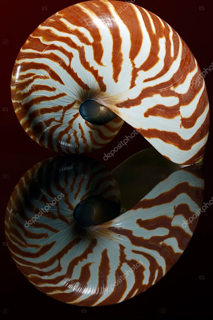 Наутилус (моллюск): фото строения раковины . Спиральная раковина в диаметре 15-23 см поделена на 38 камер, которые одна за другой соединены сифоном .