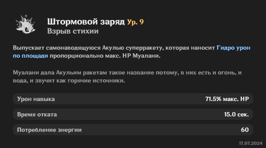 Навыки Муалани - 5★ Гидро-каталистка