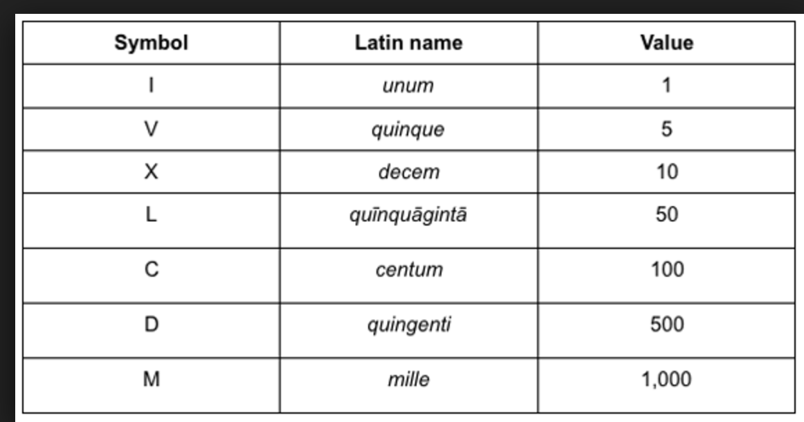 Название цифр на латинском