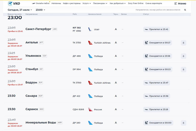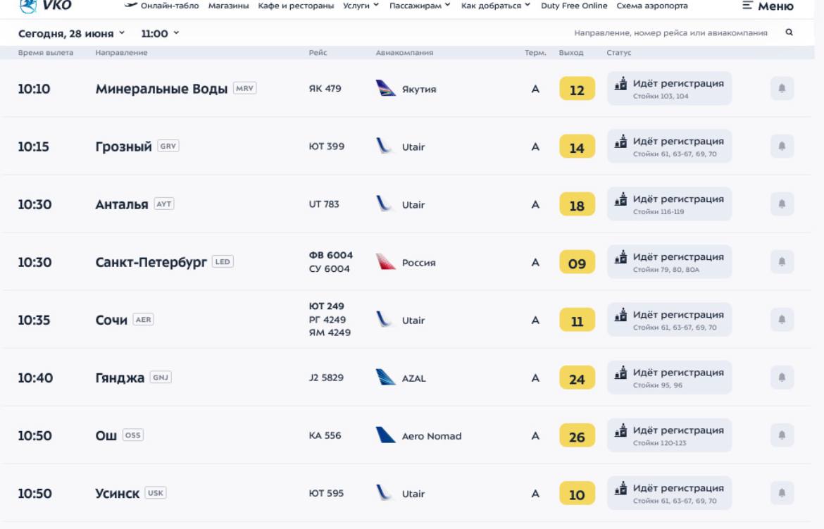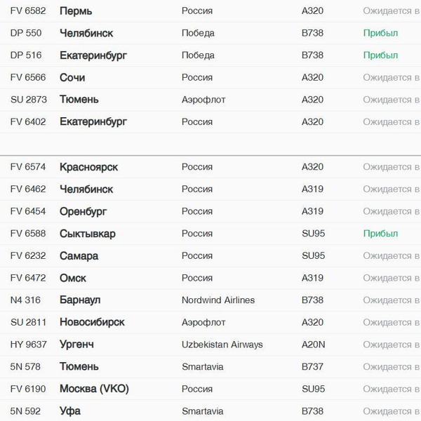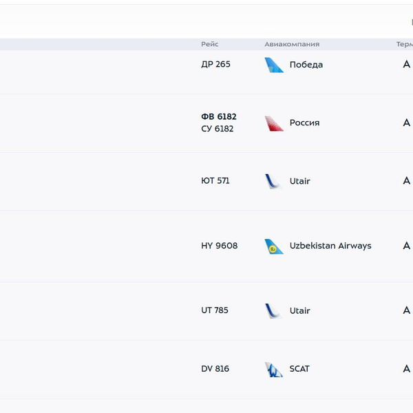 Названия рейсов самолетов