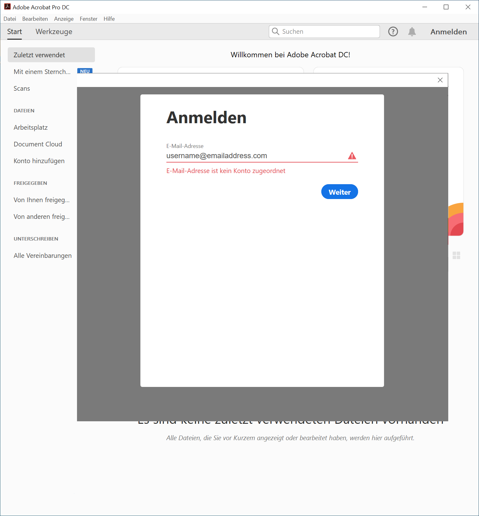 Не обнаружен аккаунт