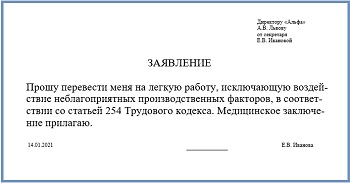 Не переводят на легкий труд
