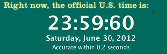 Теперь у нас есть точная секунда и мы точно зафиксировали, сколько этих точных секунд в наших сутках. Но, неожиданно, проблема! Земля вращается вокруг своей чуть медленнее, чем за 86400 секунд. Потому наши точные сутки начинают по чуть-чуть расходится с астрономическими наблюдениями. Решили, что надо бы синхронизировать. Потому тут возникает такой же эффект, как и с високосным годом: иногда у нас накапливается лишняя секунда, -- и нам нужно куда-то её вставить, чтобы всё снова сходилось. Так появляется високосная секунда (на часах, которые про неё знают):