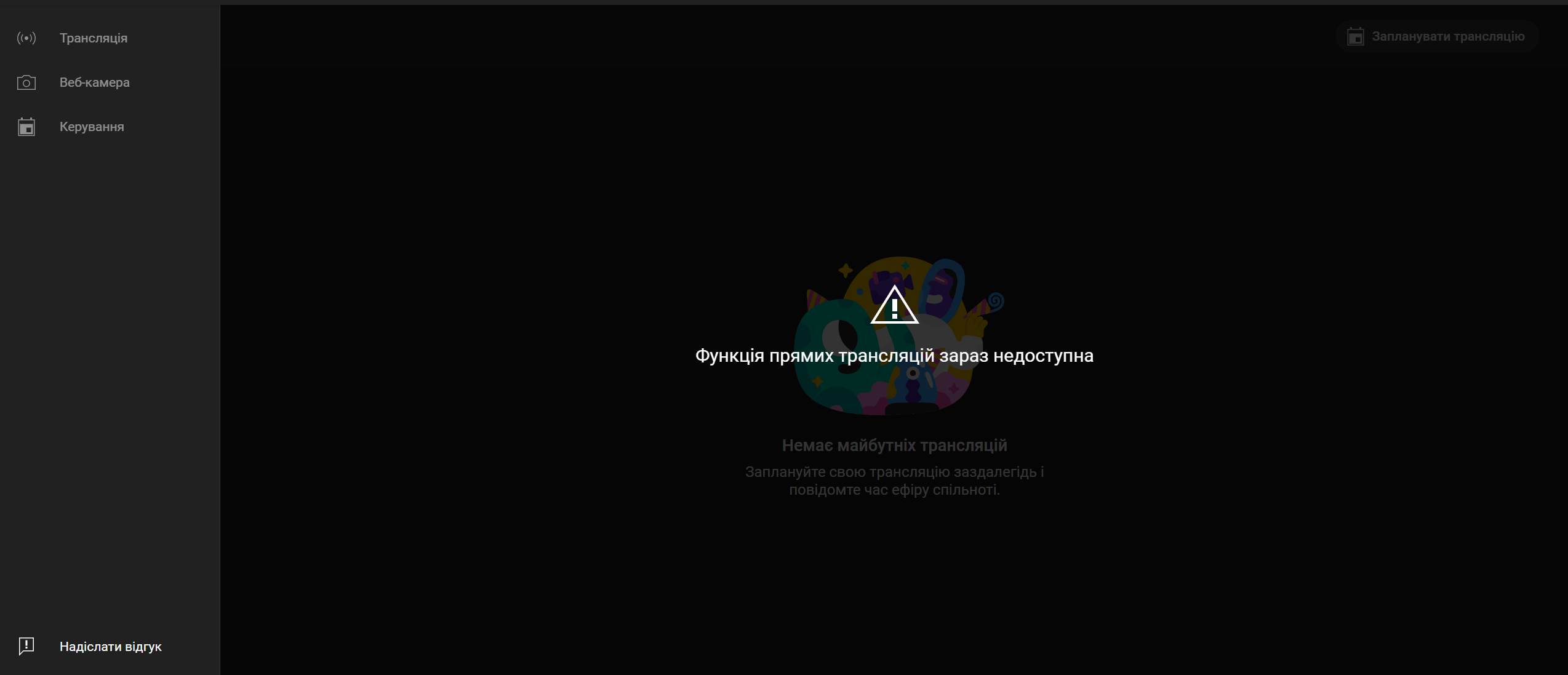 Не удалось запустить трансляцию
