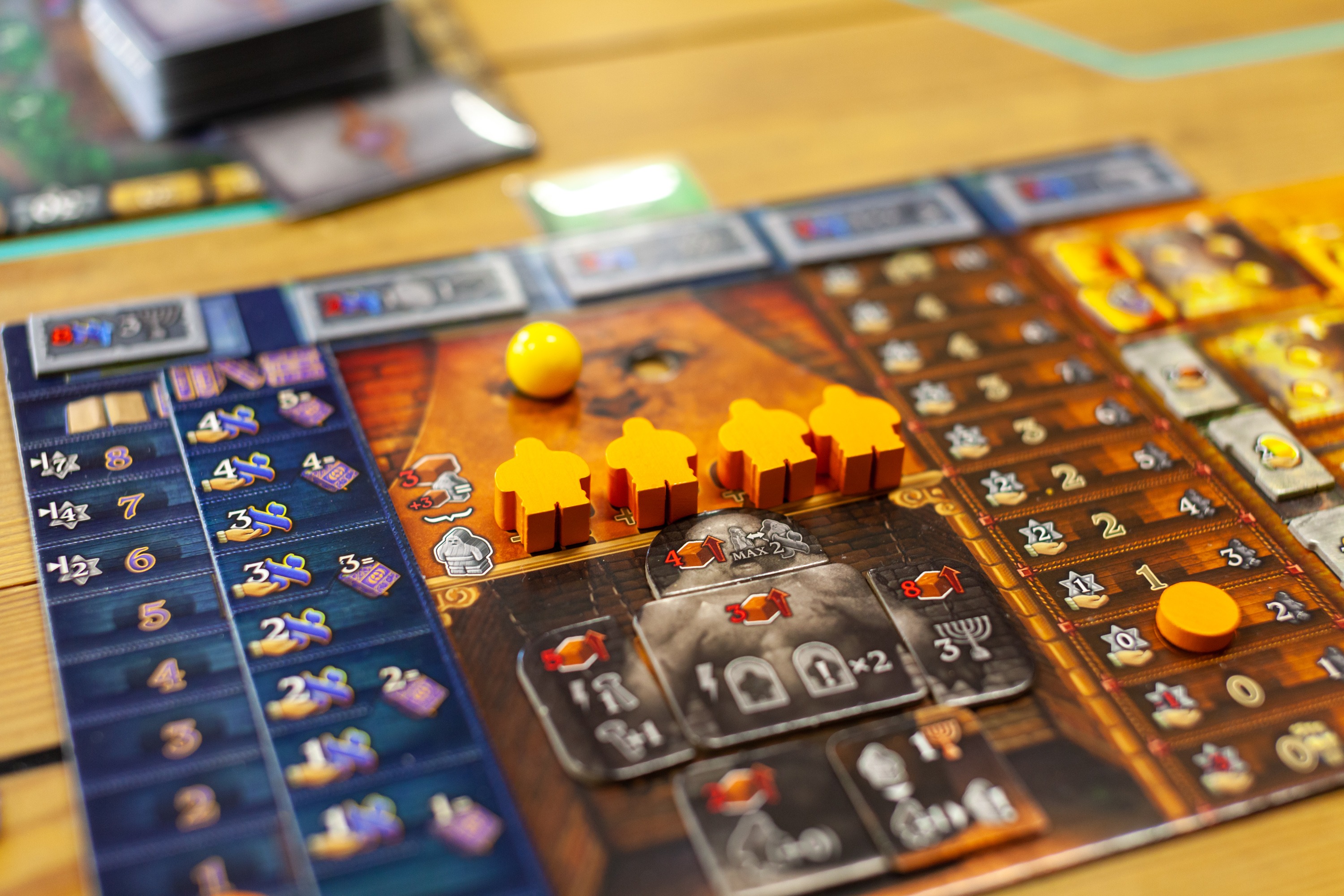 Еще один показатель сложности игры - почти все параметры в финальном подсчете здесь нужно умножать. Тут применяется аналог той самой системы очков из Орлеана, где вы собираете каких-то бродяг по карте, добавляете постройки и умножаете на показатель по другой шкале. Так вот в Големе этих умножения целых три, которые одинаково ценны и прокачка каждого принесет хороший профит, потому что в Орлеане с этим проблемки есть. Я десятки раз пытался выиграть через морячков и так и не затащил. В големе каждый вектор выглядит и приносит нормально.