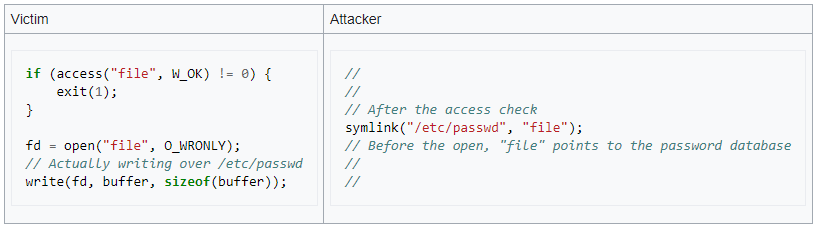 Simply put - we have a race condition situation, where we can exploit the access check!