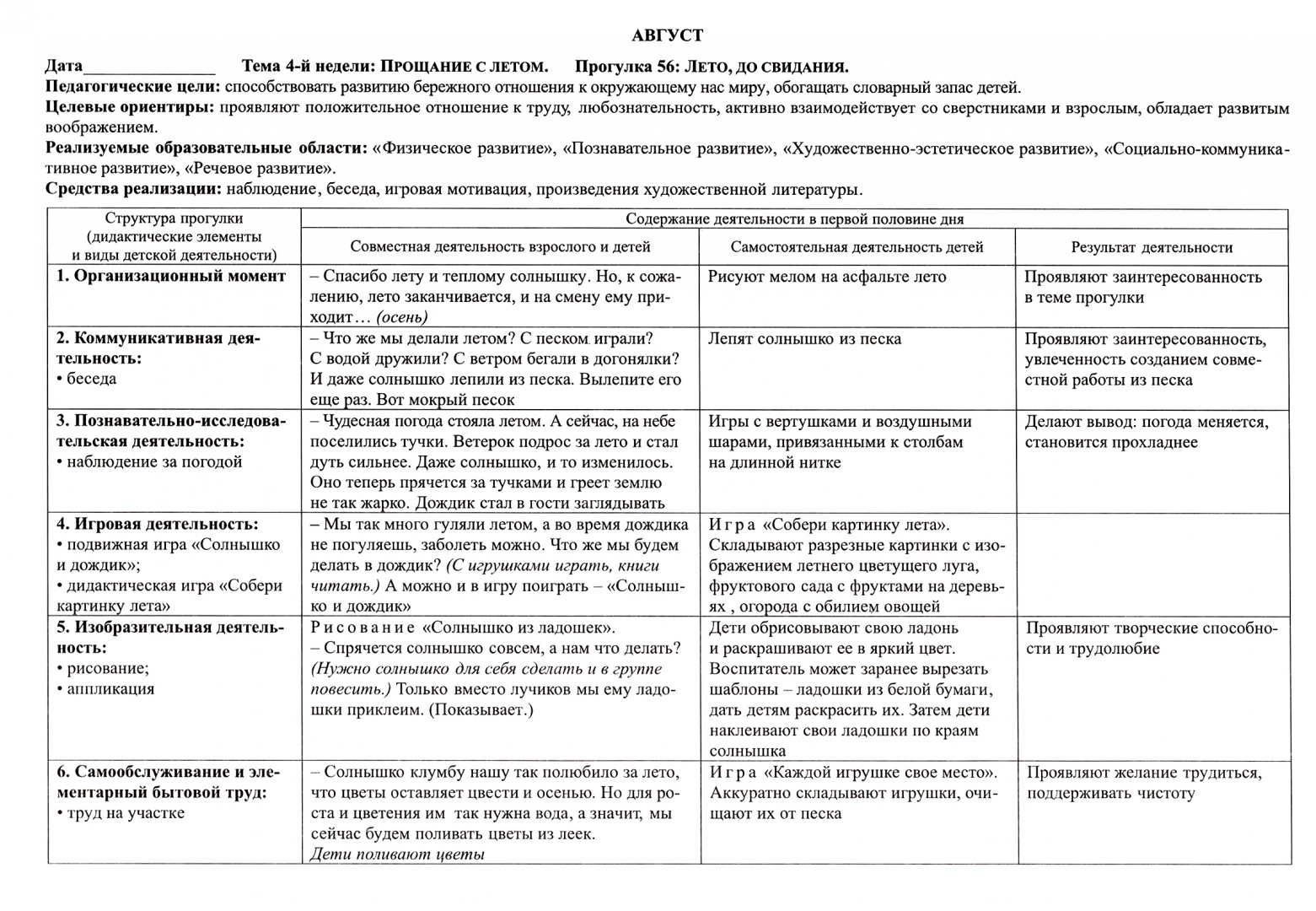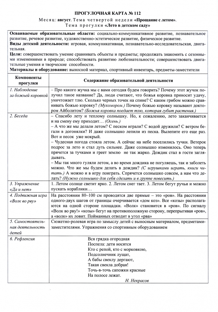 Небыкова образовательная деятельность на прогулках