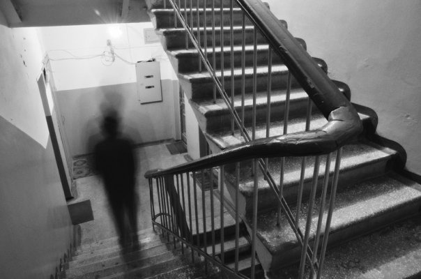 Разбудил меня опять скребущийся в дверь звук. Я около минуты ещё полежал под одеялом, но потом быстро оделся и подбежал к двери. Как и в предыдущий раз, звук сразу прекратился, и за дверью в глазок я никого не увидел. На этот раз я вышел из квартиры, посмотрел вверх и вниз по лестничным пролётам, прислушался, но в подъезде, кажется, не было ни души. Тогда я развернулся и увидел, что на двери снова проявились отпечатки ладоней, хотя и в других местах, но по ним проходили царапины, как будто кто-то пытался каким-то острым предметом стереть изображение. Тут надо объяснить: дверь в квартире стоит обычная, старая, с плоским твёрдым покрытием. Внутри есть ещё одна, но на ней давно сломан замок и я ей не пользуюсь. Кроме того, между «рамой» двери и стеной сверху есть очень узкая щель. Я быстро сбегал за тряпкой, снова оттёр, что мог, и запер за собой дверь. Весь день я ходил обеспокоенный, а часов в 18, когда было ещё достаточно светло, я увидел в глазок это — на стене слева чётко выделилась будто бы человеческая тень, но самого человека или чего угодно другого, что могло бы давать такую тень, не было, даже само её нахождение не поддавалось никаким законам, в противоположном направлении не было источников света. Я смотрел на это несколько секунд, оно стояло неподвижно, а потом, словно ощутив чужой взгляд, дёрнулось, отошло подальше к окну, а затем быстро приблизилось ко мне и тут же я ощутил удар по двери. Я отскочил назад, ошеломлённый, постоял какое-то время, собираясь с мыслями и духом, попытался взять себя в руки и трезво поразмыслить: что бы это ни было, оно не может пройти сквозь дверь. Хотя оставалось загадкой, как что-то нематериальное могло взаимодействовать с осязаемыми вещами. Подготовившись, я опять посмотрел в глазок и увидел всё то де самое: что-то вроде тени перемещалось по стенам подъезда. Я понаблюдал за этим ещё какое-то время. Потом, всё ещё чрезвычайно напуганный, но всё-таки чувствовавший себя в безопасности, я пошёл в комнату и безнадёжно стал искать в Интернете описания похожих случаев. Конечно, более трёх четвертей всех статей были очевидными выдумками, другие рассказы хоть и отдалённо походили на правду, но всё равно ничего полезного я не почерпнул. Хотя я и не особо на это надеялся, просто ничего лучше в тот момент я придумать не мог. Всё это время я чувствовал гнетущее ощущение от того, что прямо сейчас в нескольких метрах находится что-то необъяснимое и, скорее всего, злое. Прямо тут, за входной дверью. Я никогда не отрицал существование чего-то паранормального, но не ожидал, что сам встречусь с чем-то подобным.