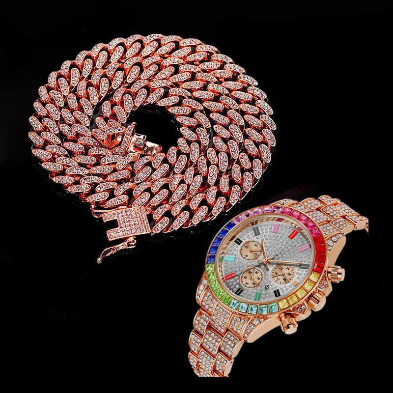ktFzdGwhuwLooked for Necklace Bracelet Hip Hop Miami Cuban Chain Gold Color Colorful Watch for Men Iced Out Paved Rapper Men Jewelry Set Women Watch for a long time, but could not find it? Bring to your attention Necklace Bracelet Hip Hop Miami Cuban Chain Gold Color Colorful Watch for Men Iced Out Paved Rapper Men Jewelry Set Women Watch with the best price!