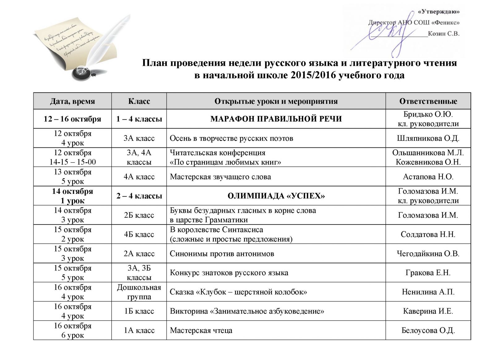 Общешкольная Неделя русского языка и литературы: план . . .
