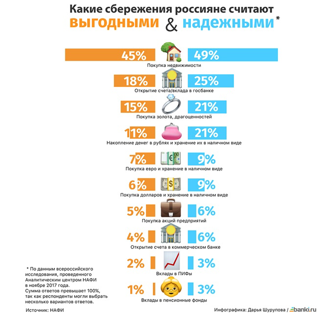 Россиянам задавали два вопроса, какое вложение они считают: а). самым прибыльным, б). самым надежным. С разгромным счетом в опросе побеждает недвижимость. Но только в опросе.