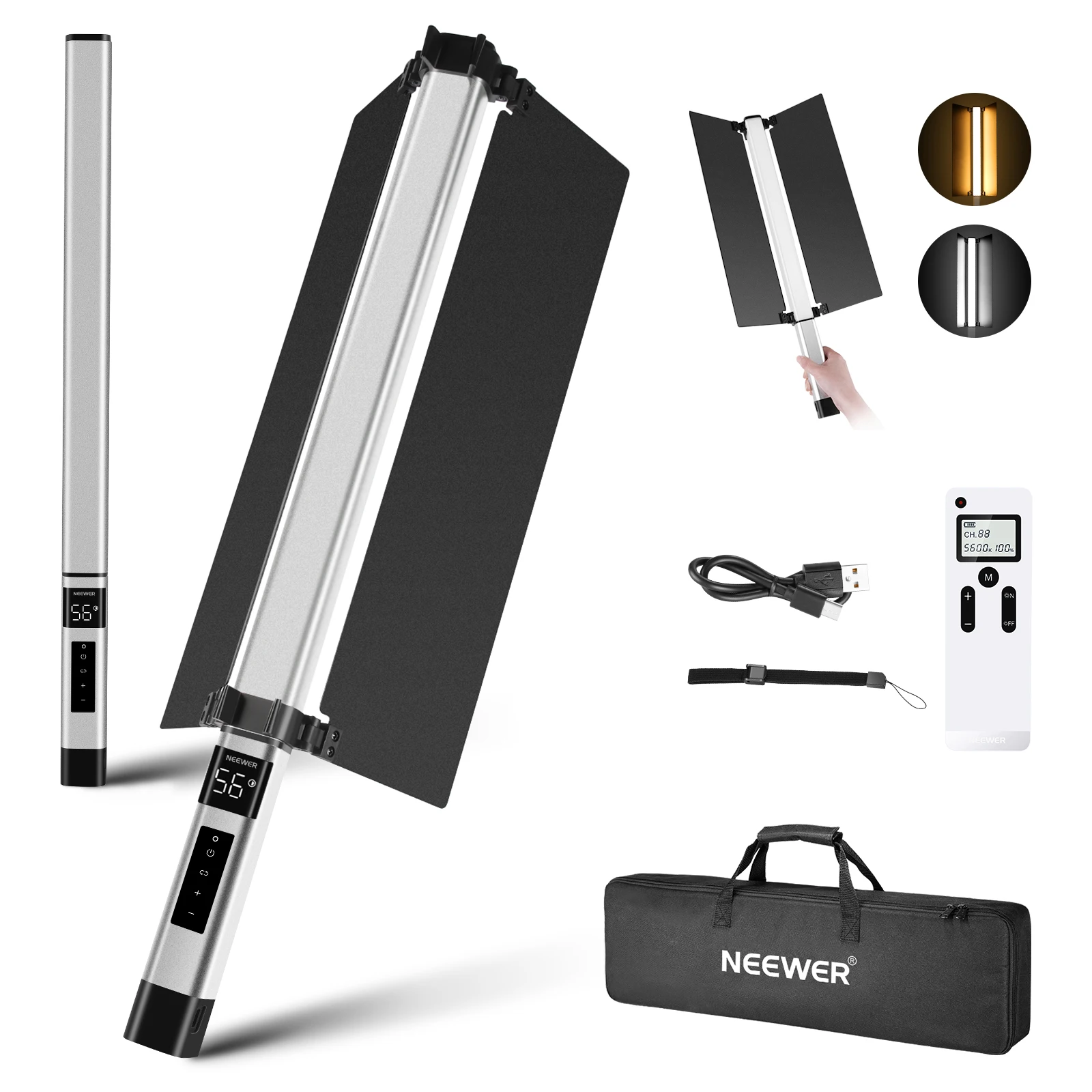 Neewer Light Wand Handheld LED Video Light Stick Photography Lighting Kit with Barndoor/Remote Control/Carry Bag 3200K-5600K - Купить с бесплатной доставкой